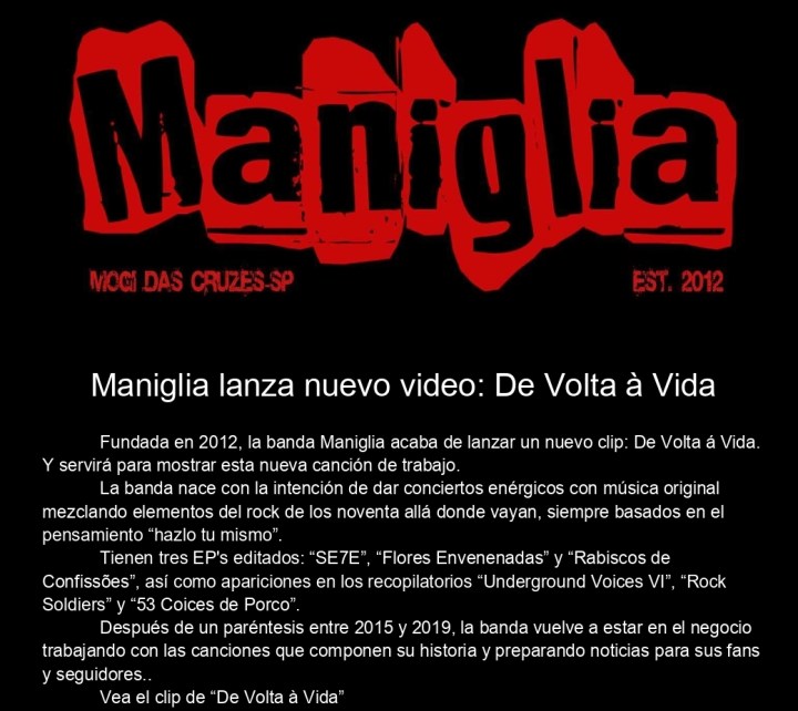 Rock and roll puro en “De volta à vida”, la nueva canción de la banda brasileña Maniglia que invita a conocer más sobre ellos y su trabajo. Texto y video a continuación.
