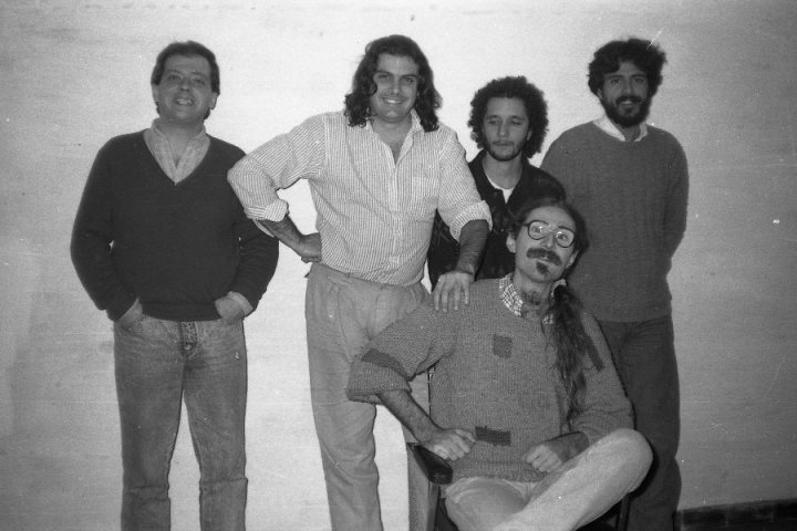 Alberto: Yo empecé tocando con El Cuarteto de Nos. Empecé antes que eso, pero voy a contar desde ahí. En el ’82 tocamos juntos por muchos lados, en cooperativas, en peñas. Yo con Wilson y un bajista hacíamos un trío. El primer recital éramos yo y el Cuarteto en el Teatro La Máscara, en el ’82. Después en el ’83 hicimos recitales en El Circular con El Cuarteto, donde yo tocaba con el trío. Se llamaba “De taquito dos”. Era una época muy brava. El patriarca era el canto popular.