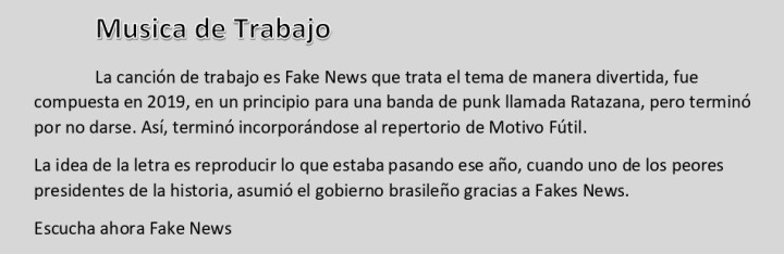 Muy buen rock en las voces y manos de los brasileños de Motivo Fútil. Así lo demuestran cuando suena su canción “Fake news” de su álbum Deus Não Pode Ver. Pueden pasar a leer y escuchar lo que tienen para contarnos.