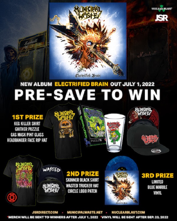 La banda estadounidense de thrash metal Municipal Waste anuncia su nuevo álbum Electrified Brain que está programado para ser lanzado mundialmente a través de Nuclear Blast el 1º de julio. El álbum será lanzado en Brasil y América Latina por la colaboración entre Shinigami Records y Nuclear Blast Records. Hoy la banda revela la portada del álbum, hecha por el artista James Bousema, el tracklist y el mortal single “Grave dive”.