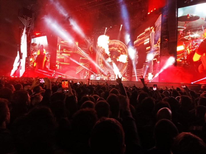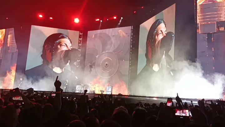 En el plan de no aflojar se sucedió la vertiginosa “Fuel” (donde se vieron por primera vez las gigantescas llamaradas sobre el escenario así como las colocadas sobre cada una de las torres de audio dispuestas a lo largo de la cancha). Seguimos con “Seek & destroy”, otro recuerdo para aquellos primeros discos de los años thrash.