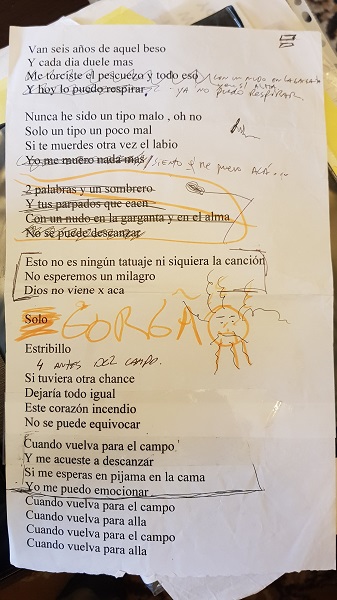 Gonzo: Es un disco con grandes canciones, bien decentes, que creo que todos los que escuchan buena música le tendrían que dar una ojeada. Hace poco me di cuenta de algo y razoné lo siguiente: considero que si una canción y un disco es decente, me imagino poniéndoselo a Paul McCartney para que lo escuche. Es una estupidez lo que estoy diciendo, pero es lo que pienso y es el termómetro y la regla que elijo. Es el obrero vivo de la canción, uno de los pocos, que es un semi dios. Yo creo que si le doy el disco a Paul McCartney, le va a gustar (risas). Creo que es un disco decente, y estoy convencido de que estas cosas van a suceder pero cuando uno ya no esté en la Tierra. Mi obra creo que la van a escuchar muchas personas pero les va a caer la ficha más adelante, y no tengo ningún conflicto con eso. Los que disfrutan ahora son con los que me siento súper agradecido, bendecido de que la gente diga “¿a ver cómo está?”. Es un buen disco.