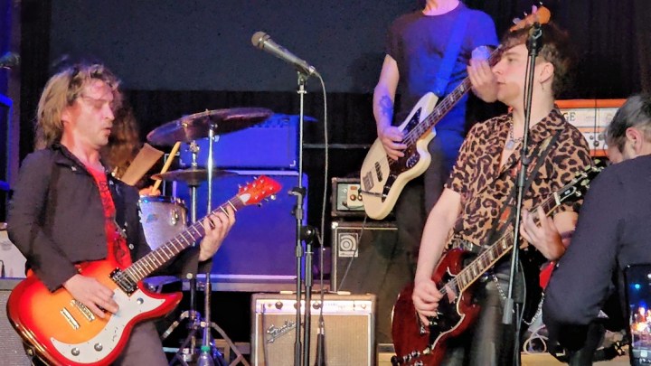 Gran despliegue guitarrístico, por momentos con tres de estos instrumentos sonando simultáneamente, marcando la pulsación y energía del rock and roll, rugiendo constantemente y brillando en los electrizantes solos. Un bajo preciso, que no sólo acompañó sino que marcó la pauta y la base a igual intensidad. Y la bata sonando allá arriba, haciendo volar palillos enteros y pedazos de los mismos.