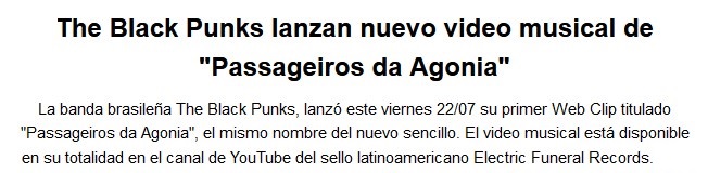 Toda la furia de la canción “Passageiros da agonia” puesta de manifiesto en el video que nos traen los brasileños de The Black Punks. Compartimos.