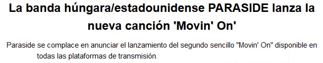 De la conjunción de integrantes de Hungría y Estados Unidos, surge la banda Paradise. Presentan su canción “Movin’ on”. Muy buena combinación de sonidos para lograr un resultado destacado.