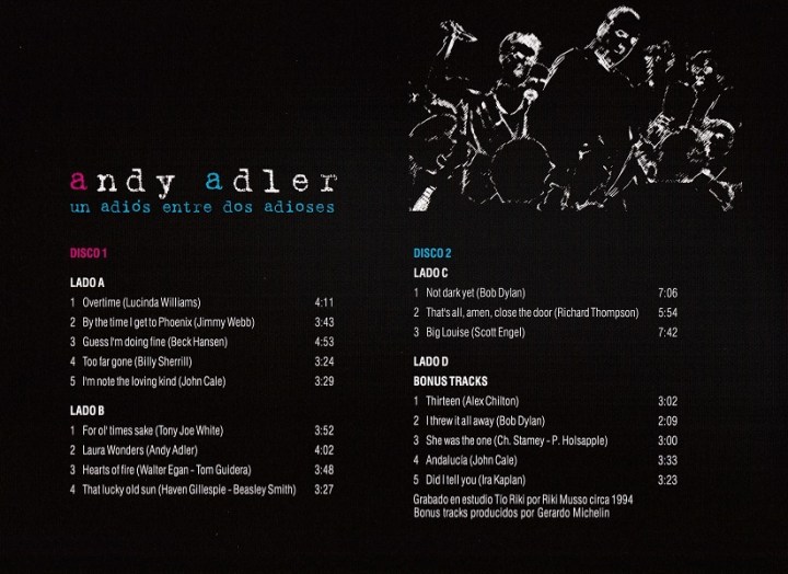 Y finalmente llegó. El disco póstumo de Andy Adler con la edición que se merecía, está al alcance de todos gracias a Ángel Atienza y su heroico y permanente sello, Perro Andaluz. Y ya es una joya que se ha incorporado a la lista de esos discos de rock nacional que hay que tener y atesorar. Excelente edición de un importantísimo trabajo del grande de Andy Adler.