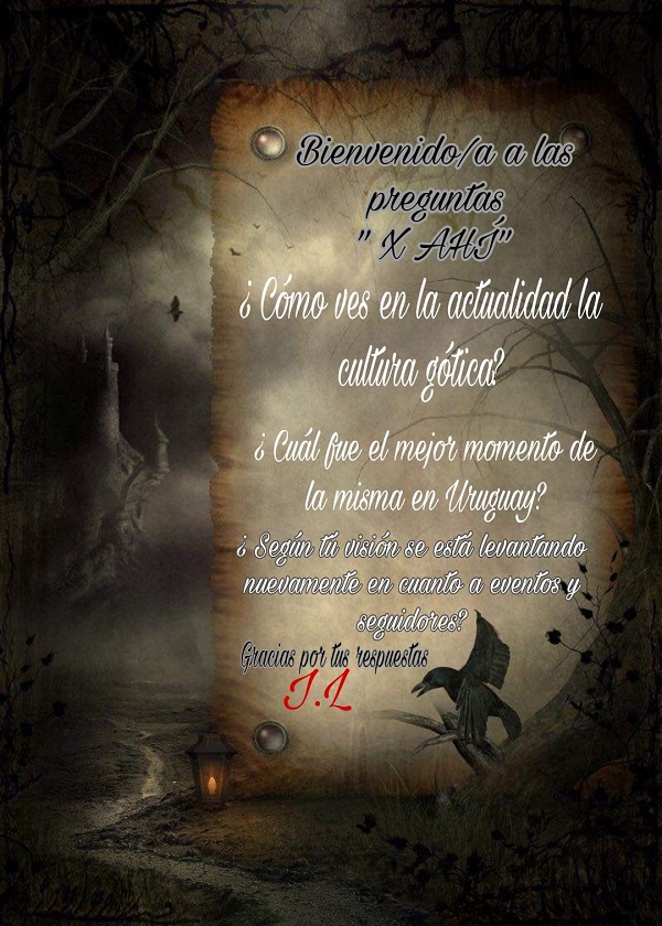 3.Con respecto al las personas góticas, hay gente de mi edad de los 2000 hacia adelante que todavía esta asistiendo a las fiestas góticas, y veo mucha gente mayor. Los jóvenes que se auto denominan góticos y realmente no lo son. También están ahí, y lo que uno espera es siempre que aprendan, que evolucione su forma de pensar, que si les gusta se metan de lleno, y si no es para ellos, que se hagan a un costado. Pero para mí es muy importante que la gente asista, que se informe. Cuanta más gente hay, cuanta más gente se informe, me parece que es mejor. Después el rumbo que tomen estas personas con la subcultura gótica dependerá de ellos También me gusta que la gente mayor se informe, de la sub cultura gótica, la parte de la luz, porque también está la parte oscura de los excesos, el alcohol y las drogas que están siempre presentes, son parte común de cualquier fiesta de cualquier evento, pero siempre se juzga a la subcultura gótica por ser distintos.