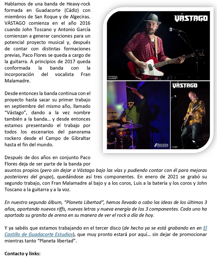 Vástago viene rockandoleando desde España y suenan muy bien. A continuación podrán leer toda la información, escuchar su música mientras ven sus videos, y disfrutar de su última entrega, “La carretera de los muertos”, que oficia de adelanto de su próximo trabajo discográfico.