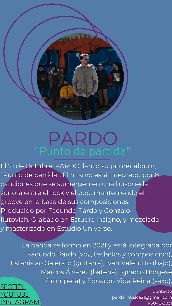 La banda Pardo viene de Argentina, más precisamente, de Buenos Aires. Nos hacen llegar toda la información de su primer álbum, denominado Punto de Partida, el cual también acompañan con la salida del video de la canción “A tu modo”. Pueden escuchar, leer y ver, a continuación.
