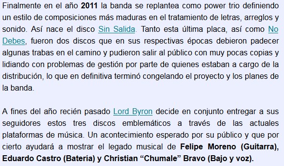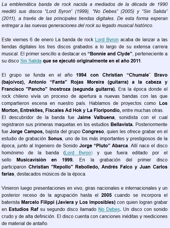 Chile nuevamente cruza la cordillera con su música y llega a tierras uruguayas. Para esta oportunidad es la banda Lord Byron la que suena. Nos cuentan la información, a continuación.