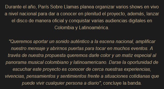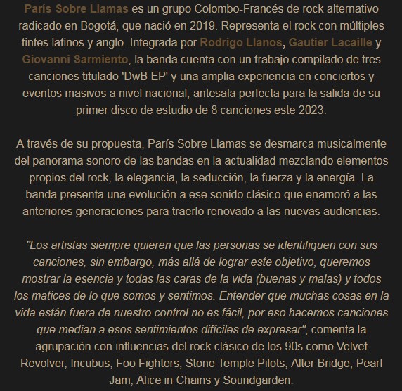 La conjunción de Colombia y Francia da como resultado a la banda París Sobre Llamas. Una buena conjunción de sonidos para presentarlos en nuestro país. Pueden comprobarlo a continuación, a través de sus canciones y videos.