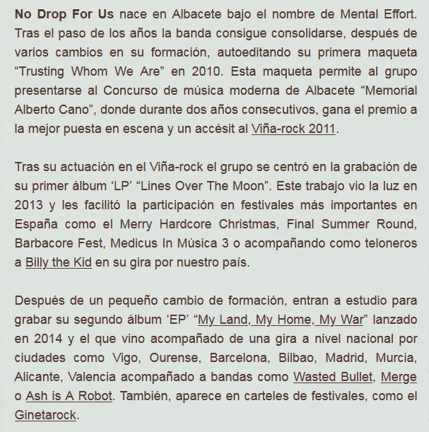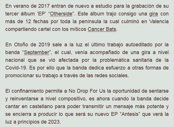 España nuevamente dice presente en Sólo Rock Uruguay. En esta oportunidad es la banda No Drop For Us que nos trae su potente simple “Lienzos” como adelanto de su próximo álbum, que dieron en llamar Antesis. Compartimos, a continuación.