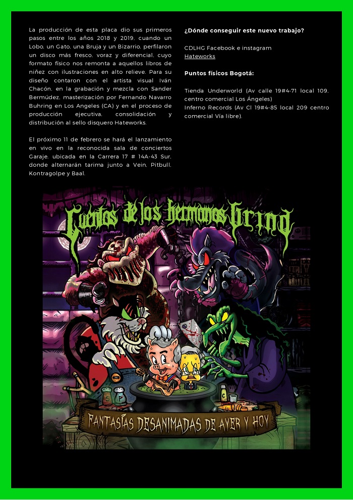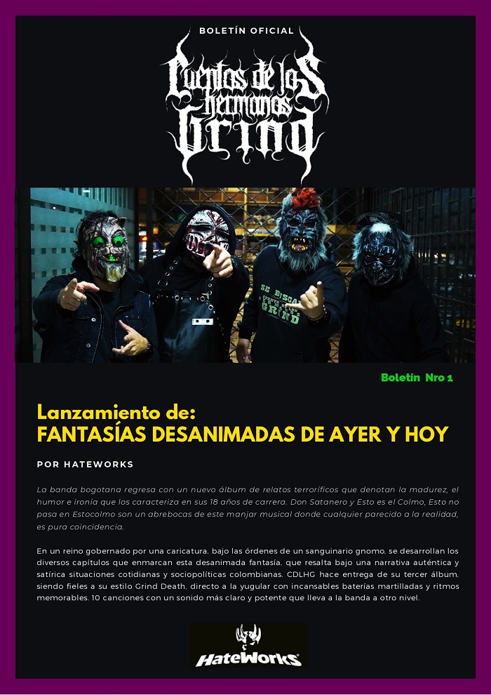 Con una propuesta más que interesante, la banda colombiana Cuentos De Los Hermanos Grind llega hasta nuestras tierras. La excusa es el lanzamiento de su último disco, Fantasías Desanimadas De Ayer y Hoy. Vemos los detalles, a continuación.
