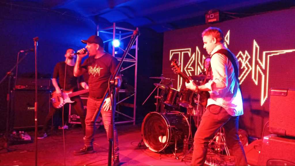 Los encargados de abrir la noche fueron los chicos y no tan chicos de Tensión, dado que por ejemplo, nada más ni nada menos el encargado de la guitarra de la banda es el legendario (ya se merece ese calificativo) Federico Sanguinetti, ex integrante de Chopper. Vaya nuestro reconocimiento a los héroes del metal que se han forjado un lugar de reconocimiento y permanencia durante varias décadas a pesar de tanta contracorriente.