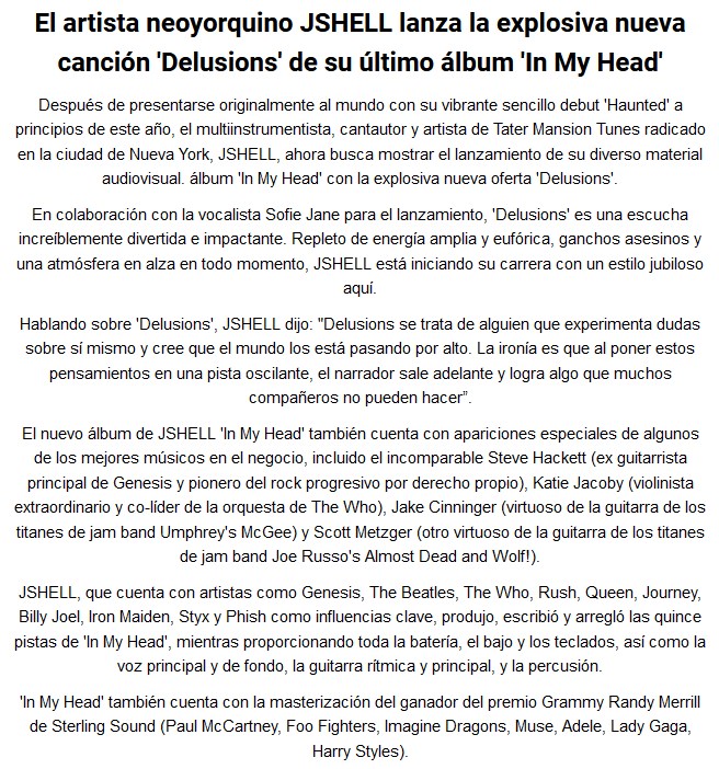 Excelentes sonidos nos trae la canción “Delusions” directamente desde Estados Unidos. El encargado de la entrega es JShell. El tema es parte de su último disco y también cuenta con un video. Gran canción, no dejen de escucharla y leer la información.