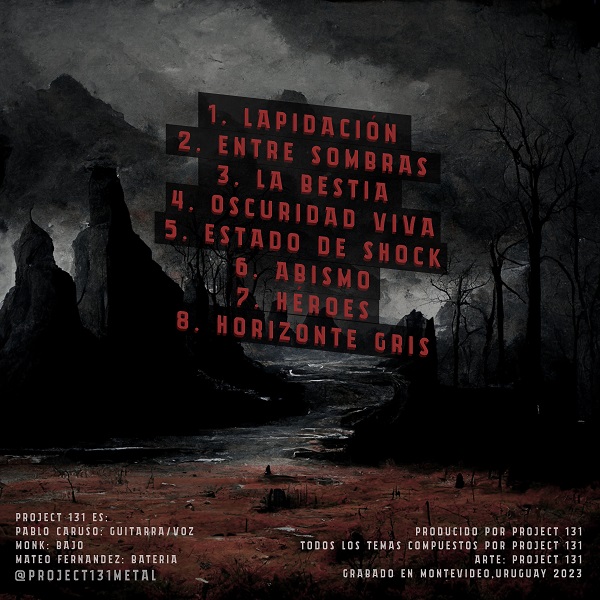 El tema elegido para abrir el disco es “Lapidación”, que tras una breve introducción de guitarras, ruge con toda la intensidad de la banda para sustentar la voz de Pablo. La canción está apoyada por un excelente video, como pasa con otras en este mismo disco. Al minuto de haber comenzado, la voz gutural deja paso a la tonada del coro, para luego volver a repetir la muy buena receta. Pegadito viene “Entre sombras”, que continúa a la perfección la línea de su predecesor, con marcada fuerza musical e interpretativa. “La bestia” tiene un ritmo más lento, pero no por eso pierde potencia, todo lo contrario. Presenta ese desafío, que es holgadamente superado a base de buenos riffs y una contundente base, coronados por el sentido solo de guitarra. El cuarto tema da nombre al disco y desde el inicio se muestra como uno de los puntales del mismo. Rítmicamente marcado y con los quiebres necesarios para tornarlo interesante, “Oscuridad viva” cuenta con componentes variados y destacados. La responsabilidad de seguir recae en “Estado de shock”. Salva la exigencia con un excelente arreglo inicial y con cambios musicales que le dan personalidad. Con “Abismo” la banda redobla la apuesta con el aporte vocal de Sofi May. Gran elección para “condimentar” el tema con una de las mejores voces femeninas de nuestro rock, que se integra perfectamente a la propuesta de Project 131. Ciertos tambores introducen a “Héroes” y el ritmo se apodera del inicio de la canción. Arreglos diferentes que ayudan a que aparezca como una de las canciones más distintas y que la llevan a un lugar destacado dentro de la placa. “Horizonte gris” marca el final, poseído de una atmósfera densa, creando climas iniciales diferentes para culminar en otra potente entrega.