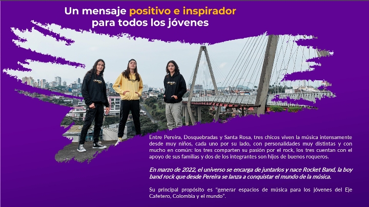 Rocket Band es el nombre que estos tres jóvenes colombianos le pusieron a la banda que están lanzando. Para esto, nos presentan su tema de difusión, que dieron en llamar «Vuelve a mí». También nos comparten dos videos, uno de ellos en vivo. Pueden verlos y escuchar su música, a continuación.