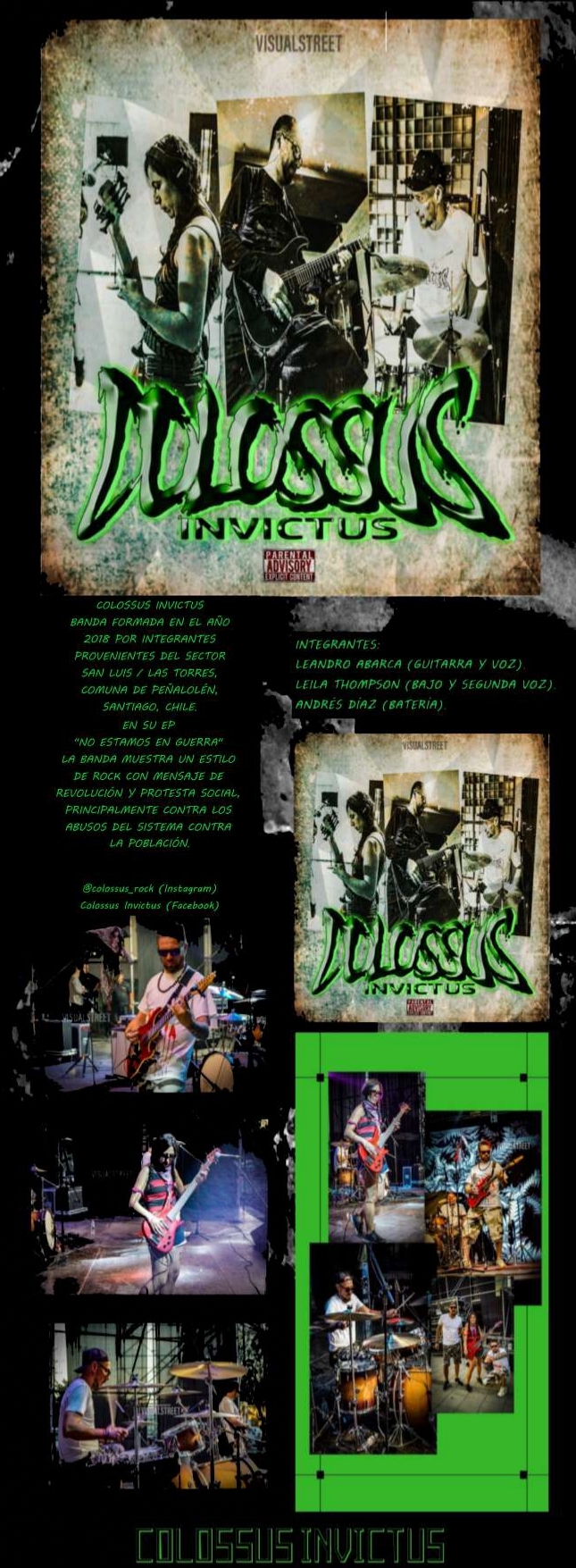 Chile sigue produciendo bandas que suenan de puta madre. Es el caso de Colossus Invictus, que llega hasta nuestras tierras para traernos su EP No Estamos En Guerra. Cuatro potentes canciones con una propuesta rockera al 100% y que invitan a escuchar, seguir e investigar más sobre la banda.