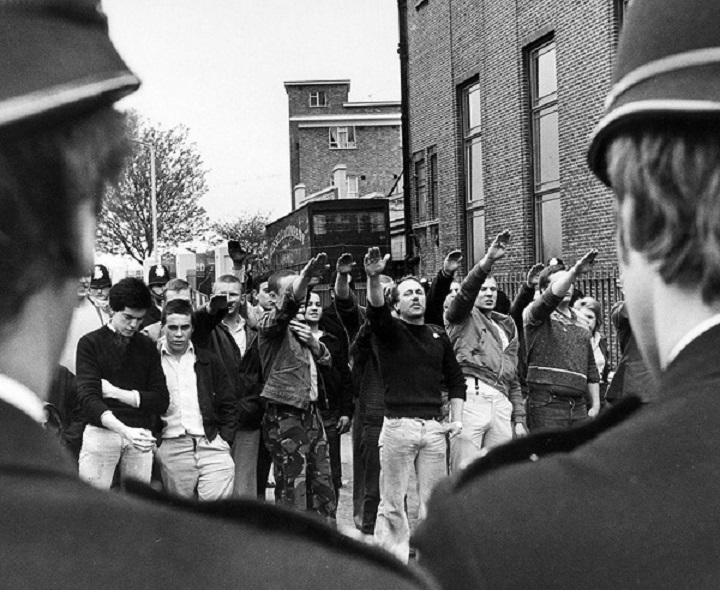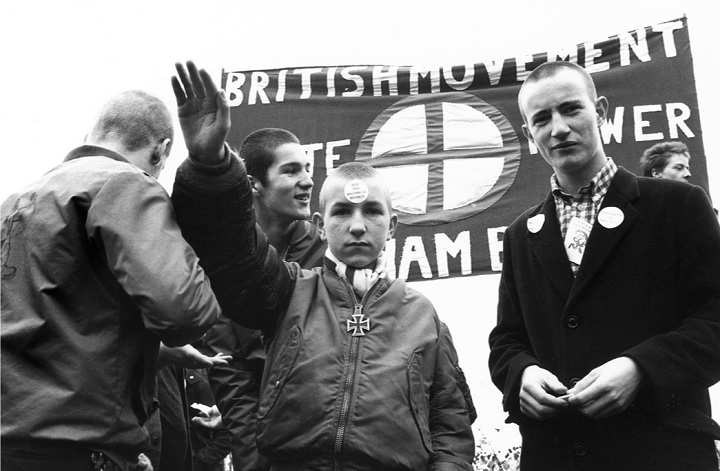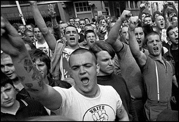 Los fracasos electorales habían llevado a las organizaciones fascistas de Gran Bretaña a replantearse su estrategia. A semejanza de los movimientos de extrema derecha de los años treinta, buscaron consolidarse a través de una fuerza paramilitar que sembrara el desconcierto y afianzase su presencia en las calles. Pusieron sus miras en la nueva escena punk; no es de extrañar, ésta se había vuelto más agresiva, había pasado de ser un movimiento vanguardista, formado en parte por estudiantes y artistas, a tener un fuerte componente popular. Las nuevas bandas hablaban de las calles, de fútbol, de peleas de bar. Además, como tribu urbana, los skinheads presentaban una consonancia estética, que permitía sortear la ley británica que prohíbe llevar uniforme de un partido -precisamente para evitar la aparición grupúsculos paramilitares- y así presentar esa efigie de ejército urbano, rígido e implacable que toma las calles en base al temor y la violencia. Sus acciones ya se habían presentado a finales de los setenta. Bandas como Sham 69 o Angelic Upstarts sufrieron de primera mano como los ultraderechistas tomaban la escena y reventaban sus conciertos.