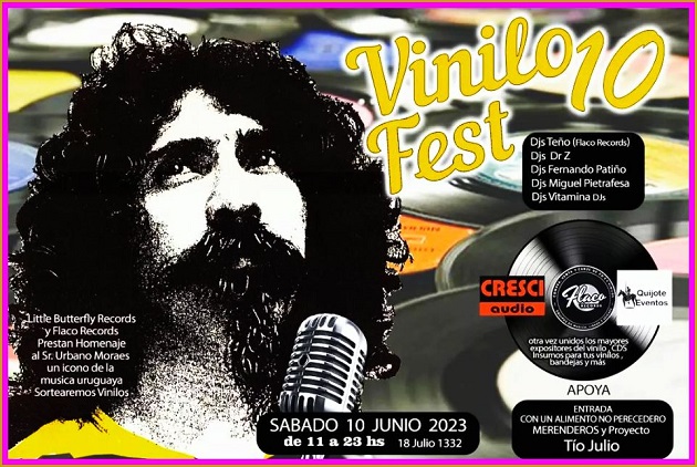 El próximo sábado 10 de junio se llevará a cabo la décima edición del ya clásico evento Vinilo Fest. El mismo tendrá lugar, como es habitual, en el restorán Mesón Español (18 de julio 1332) dentro del Club Español. La fiesta contará con 10 DJs invitados, comidas y tragos en una sala climatizada en el horario de 11 horas a 23 horas. Además, Little Butterfly Records y Flaco Records brindarán un homenaje a un grande de la música nacional, el Sr. Urbano Moraes. También se aprovechará a apoyar al merendero Tío Julio aportando un alimento no perecedero a la entrada. Para más detalles, charlamos con Teño Valerio, de Flaco Records.