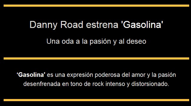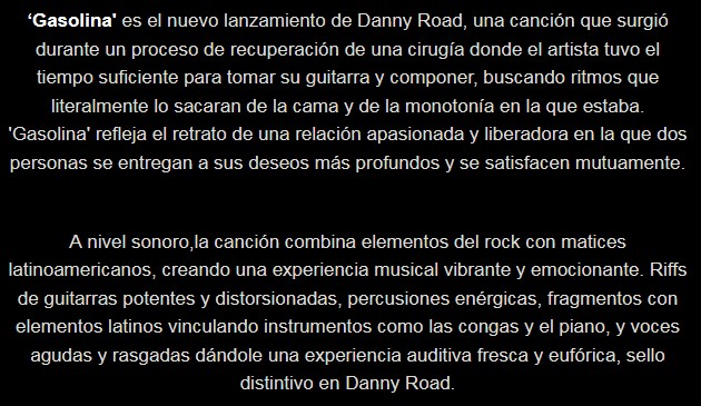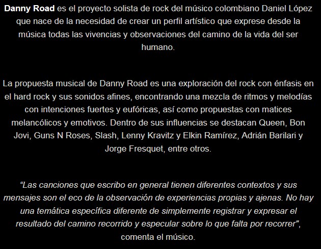 “Gasolina” comienza a sonar y ya nos da la pauta de que es un muy buen tema de rock. El músico colombiano de rock Daniel López presenta así su proyecto solista, que ha denominado Danny Road, con una excelente canción óptimamente interpretada y con ingredientes más que interesantes. Pasen a escuchar y leer.
