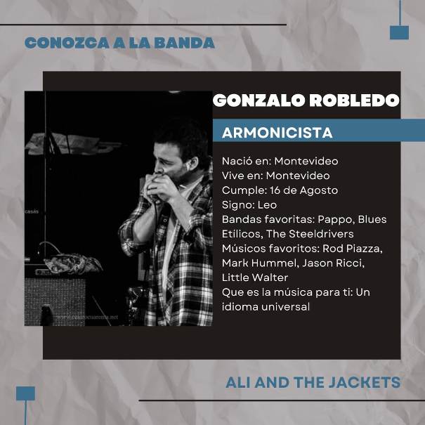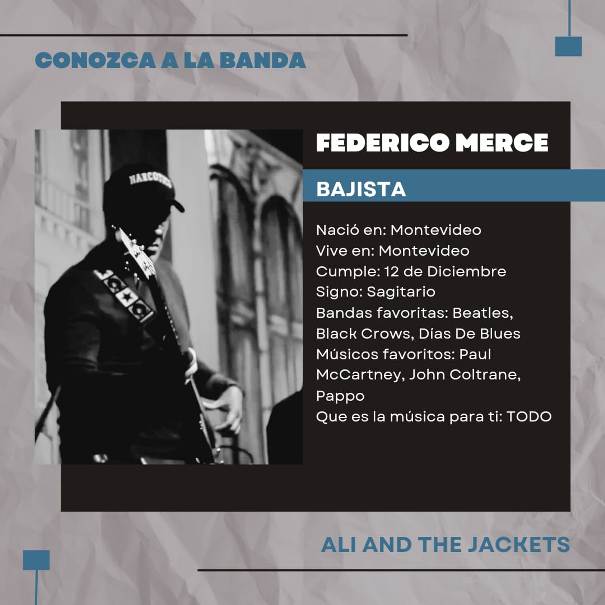Una nueva banda conformada por músicos experientes viene dando que hablar en nuestro medio. Se trata de Ali & The Jackets, que con su repertorio de rock y blues viene presentándose en diferentes lugares. Ali González, Aldo Deferrari, Federico Merce, Andrés Fulco y Gonzalo Robledo son los responsables del sonido de la banda, que presenta una profesional y cuidada propuesta. Previo a sus dos próximos toques, presentamos a la banda.