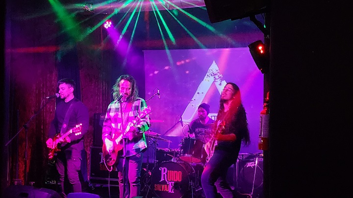 Luego, Ruido Salvaje se hizo cargo del cierre de la noche con su propuesta basada en la música punk y la velocidad. Canciones directas, de esas que llegan de una, cargadas de una energía arrolladora. Gran trabajo de los dos vocalistas que supieron contagiar la energía a caballo de una sólida base musical. Hubo ese “te doy y me devolvés” entre la banda y la gente, que recepcionó, procesó y devolvió el sentir que les provocaba las canciones que la banda les “tiraba”. El cierre final fue con su versión de “Porque te vas”, de Jeanette.