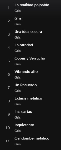 ¿Pero qué hay en Gris? Fundamentalmente está el trabajo de tres músicos referentes que se juntan para dar rienda suelta a la experimentación y la espontaneidad, donde podremos encontrar un poco de todo lo que se podía esperar de la conjunción del trío: muy buenos sonidos, combinados de formas a veces sorprendentes que nos llevan por caminos de descubrimiento y de disfrute. Hay mucha variedad que determina que la experiencia sea gratificante y reveladora del resultado alquímico de las influencias y gustos de los tres participantes. Habiendo asimilado Gris, queda esperar a Verde y Azul.