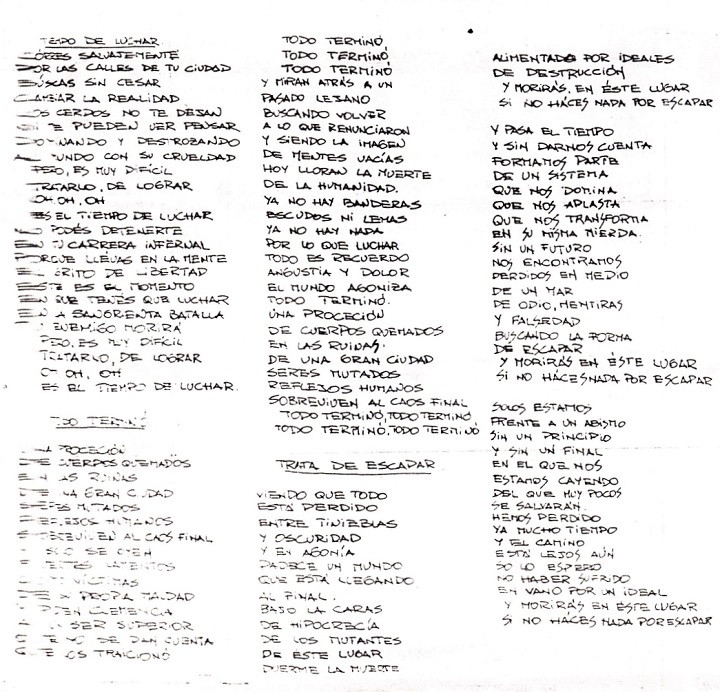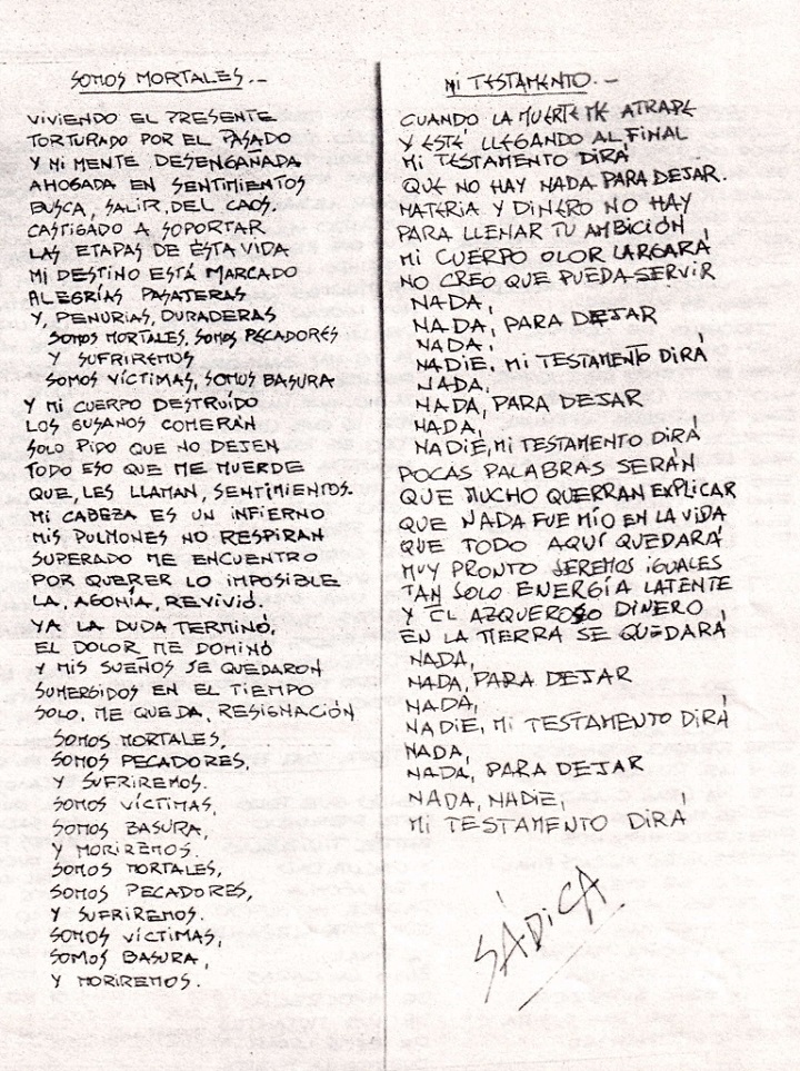 Repartido de letras de Sádica editado en su momento por la Cooperativa del Molino