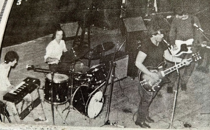 De esta manera, llegamos a la jornada del sábado 6 de agosto de 1983. Por la tarde, en el Centro Protección de Choferes de Pando se realizó una kermesse a beneficio del grupo de viaje del sexto de Derecho del Brause, y por la noche un baile con el mismo objetivo. Esa jornada pasó a la historia por el debut de una “banda distinta”, como advertía el afiche: Los Estómagos. Asistí a la verbena en el predio en donde años después se construiría la piscina del club. Entre porciones de tortas y pizzas me encontré, a la noche, con mis compañeros de equipo para celebrar el flamante título logrado. Todo transcurría con total normalidad hasta que cuatro muchachos, de muy raro aspecto, subieron a un improvisado escenario montado en el salón de fiestas. Al primer acorde lo supe, ese era el sonido que salía de la casa de los Pratto, cosa que terminé de confirmar cuando interpretaron “La aplanadora” (junto a “La barométrica” y “No me rompas”, una gran versión de un clásico de los Skids, fueron los temas de The Vultures que permanecieron en el primer repertorio de Los Estómagos).