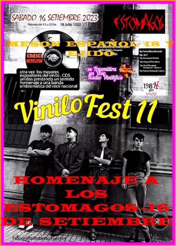 Fabián: Este año 2023 tenía la idea de hacer algo relacionado al rock uruguayo, porque los años anteriores se hizo en general con música internacional, más que nada música de los años setentas, ochentas y noventas. Mezclaba algún tema de rock uruguayo, rock argentino, brasileño, pero este año decidimos hacer algo exclusivo de rock uruguayo, 60 minutos de música con la participación de los músicos, propagandas de época etc. De esa manera se dio la participación en el Vinilo Fest 11. Este año se rinde homenaje a una de las bandas de la cual soy fan, Los Estómagos Tengo pensado hacer un set de rock uruguayo en general los primeros 20 minutos y voy a cerrar con un set exclusivo, con todos los temas, la música, los discos de la banda pionera del punk rock del Uruguay, Los Estómagos.
