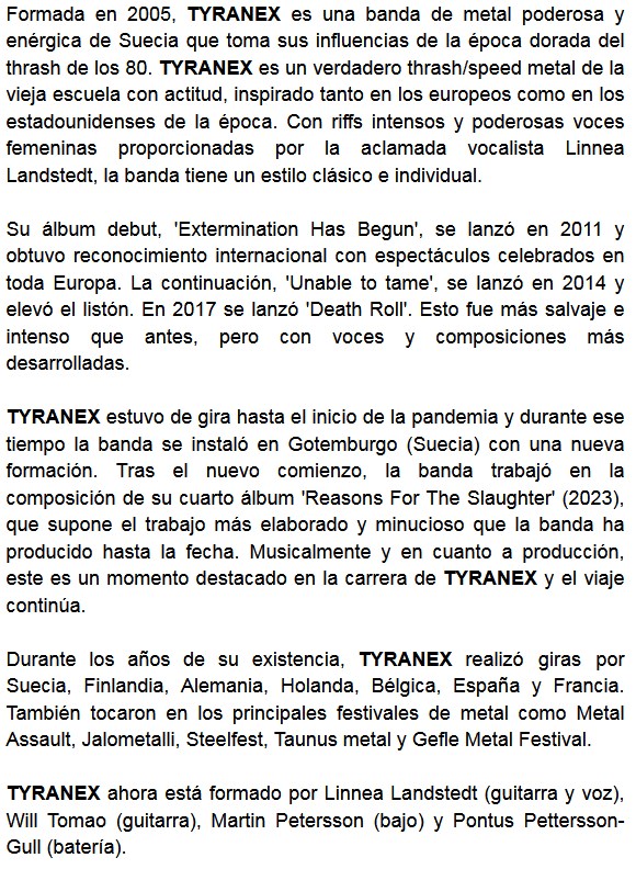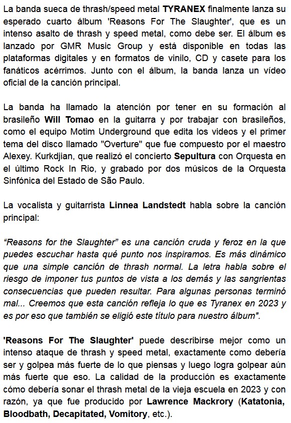 Suecia vuelve a las páginas de Sólo Rock Uruguay. Esta vez es la banda Tyranex, que nos trae su disco Reasons For The Slaughter. El tema principal es homónimo y está acompañado de un video. Presentamos toda la información a continuación.