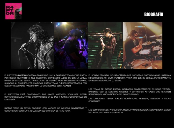 Gran trabajo el que presenta la banda peruana R4ptor en su EP Volumen 1. Sonando 100% rock, con contundencia en lo musical y lo vocal. Cinco tremendas canciones que recomendamos escuchar.