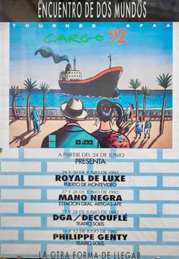 El grupo francés Mano Negra llegó a Uruguay en Le Melquiades (Cargo 92), un enorme barco carguero, armado para la ocasión, en el que también viajaban las compañías teatrales Philippe Decouflé, Philippe Genty y Royal de Luxe. Se trató de una iniciativa de La Ciudad de Nantes, los Ministerios de Cultura y Relaciones Exteriores de Francia, que pretendieron, a través del trabajo de estos artistas, celebrar en cada destino “el gran desfile de la verdadera historia de Francia”. Además, efectivamente fue parte de la conmemoración del quinto centenario del descubrimiento de América.