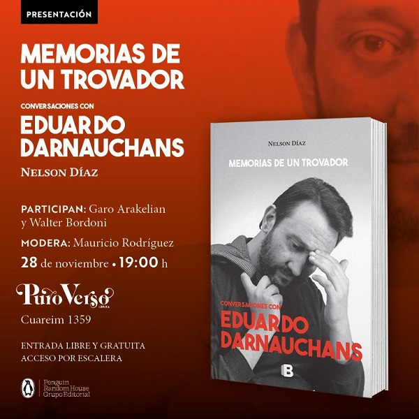 En el marco del 70° aniversario del nacimiento de Eduardo Darnauchans, Ediciones B reedita el libro de Nelson Díaz, originalmente puesto a la venta de 2008. Memorias de un trovador: Conversaciones con Eduardo Darnauchans, es el fruto de las charlas entre ambos basadas en la relación músico/manager que tuvieron durante un tiempo y, fundamentalmente, en su amistad.
