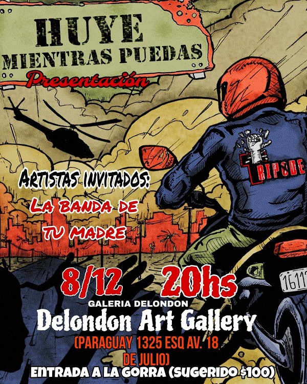 Justamente hoy Trípode presenta Huye Mientras Puedas junto a La Banda De Tu Madre en Delondon Art Gallery (Paraguay 1325 esquina 18 de Julio). La cita es a las 20 horas y la entrada es a la gorra, con una sugerencia de $100. Es una buena oportunidad de verlos en vivo y de escuchar, entre otras, estas cuatro canciones con la banda sobre el escenario.