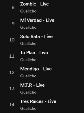 Para Vivo la producción musical es de Gualicho, co producido por Antonio Acosta y mezclado y masterizado en Ciclos Estudio por Antonio Acosta. Es así que esta edición llega dos años después pero presentando ese muy buen concierto de la banda, donde se los vio plenos. Catorce son las canciones que componen el disco, dentro de las cuales Gualicho destaca especialmente la versión de “Zombie” a cargo de Flavia Aldao. Los temas son: