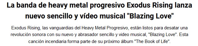 Exodus Rising presenta en nuestro medio su canción “Blazinglove”, que integrará su próximo disco The Book Of Life. Para la oportunidad, la banda norteamericana acompaña el tema con un video. Música y lectura a continuación.