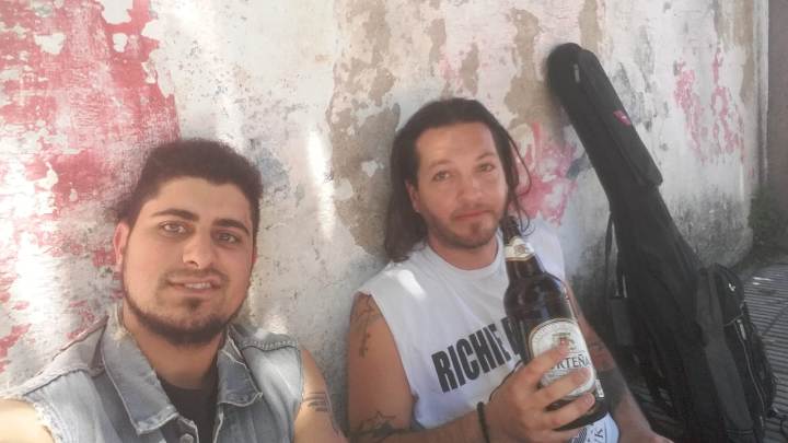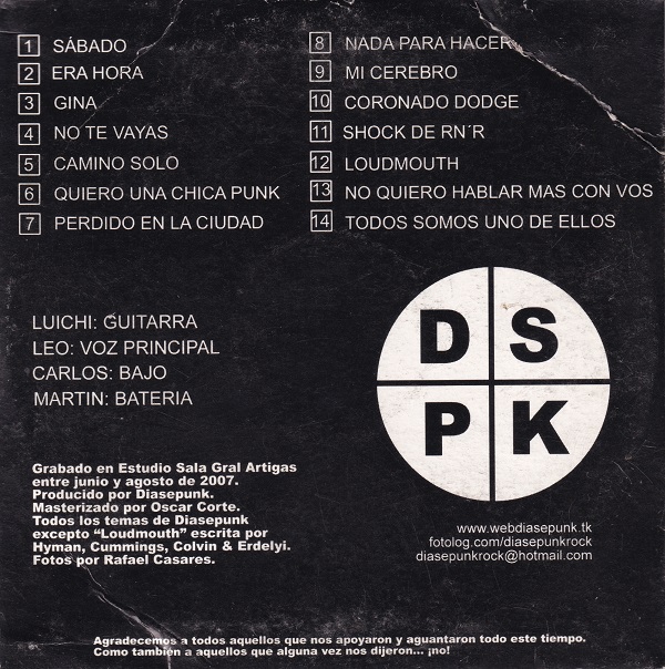 Daniel: Conocí a Leo, no recuerdo bien el año, puede ser el 2003-04. En esa época él era el batero de Diasepunk… el año puede estar errado; épocas muy locas. Creo que la primera vez que lo vi fue en una fecha que Diasepunk compartió con La Sangre de Veronika. Con mi grupo de amigos de Toledo, en esa época siempre íbamos a ver a La Sangre y nos re colgamos con Diasepunk. En esa época las bandas de estilo ramonero estaban al tope y la Diase era la que más nos gustaba, siendo todos fanáticos de Los Ramones. Con el pasar de los toques, de las noches, entablamos una amistad de esas que no hablás todos los días, pero cuando te ves te fundís en un abrazo, la charla fluye y la cerveza también.