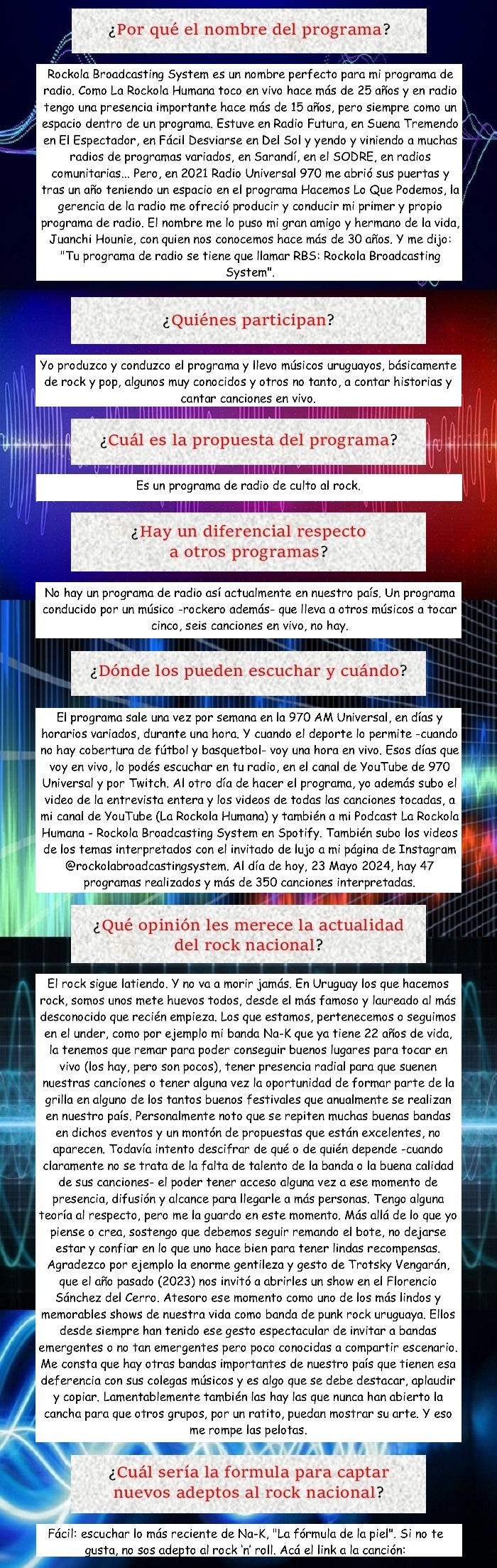 El trabajo de difusión del rock nacional es arduo y se sostiene en esfuerzos individuales o colectivos de gente de dentro del movimiento. Dentro de ese grupo, quienes tienen programas de radio, asumen la grata tarea de pasar música, charlar con músicos y difundir actividades. Con esta serie de artículos denominada Programas Radiales De Apoyo Al Rock Nacional, es nuestro interés sumar la iniciativa de dar a conocer y profundizar el meritorio trabajo de estos colegas. Hoy responde a nuestras preguntas Naka Etcheverry, de Rockola Broadcasting System.