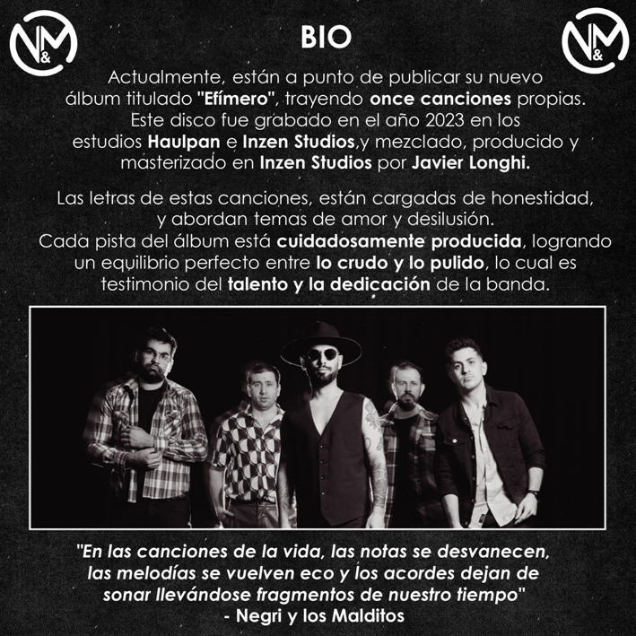 Negri y Los Malditos es una banda que nació en el año 2022 e interpretan temas de autoría propia y éxitos del rock argentino de los años ’90.