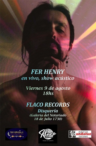 El próximo viernes 9 de agosto Fer Henry se estará presentando en Flaco Records (Galería del Notariado, 18 de Julio entre Gaboto y Magallanes, locales 7 y 8). La cita será a las 18 horas, donde podremos apreciar el arte de Fer a través de sus canciones. Será la oportunidad para presentar su último disco, Nueve Infinitos, y otros temas del artista. Entrevistamos a Fer para que nos cuente algún detalle más, charla que reproducimos a continuación.