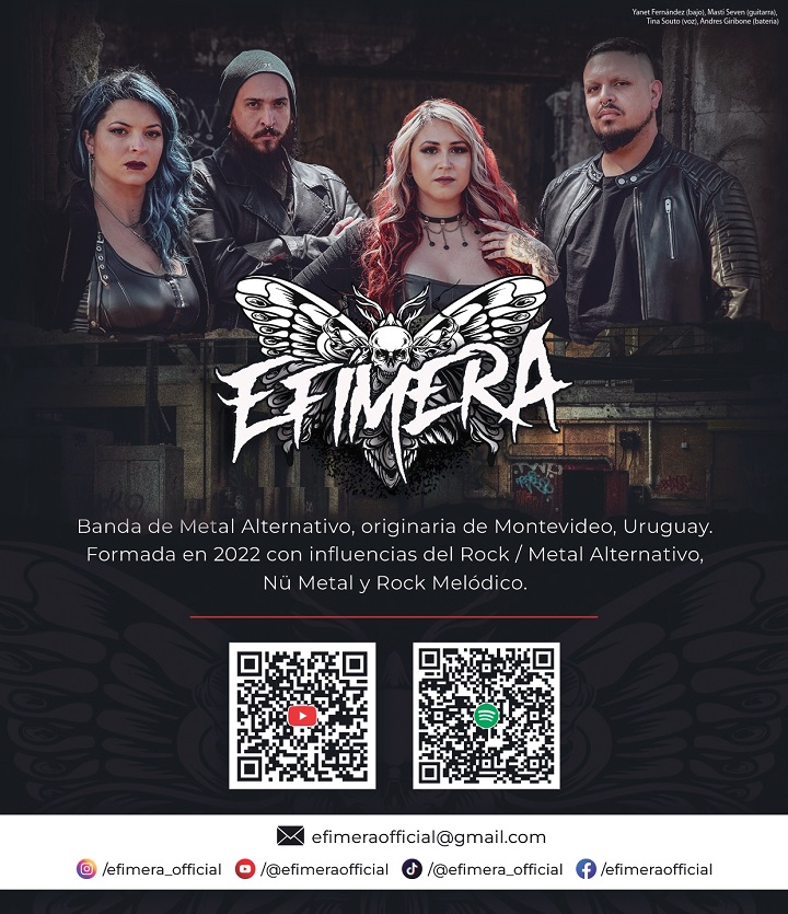 Efímera es una banda local que toma diferentes vertientes para fusionarlas en su propuesta metalera. Está conformada actualmente por Tina Souto (voz), Masti Seven (guitarra), Yanet Fernández (bajo) y Andrés Giribone (batería), y se encuentran grabando lo que será su próximo álbum. Como adelanto, ya se puede escuchar “En silencio”, “Cagón” y “Criminal”, que dan una buena idea de por dónde viene la propuesta de Efímera. Para conversar sobre la actualidad y futuro de la banda, charlamos con Yanet y Masti, y esto fue lo que nos comentaron.
