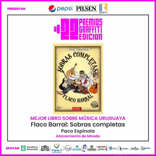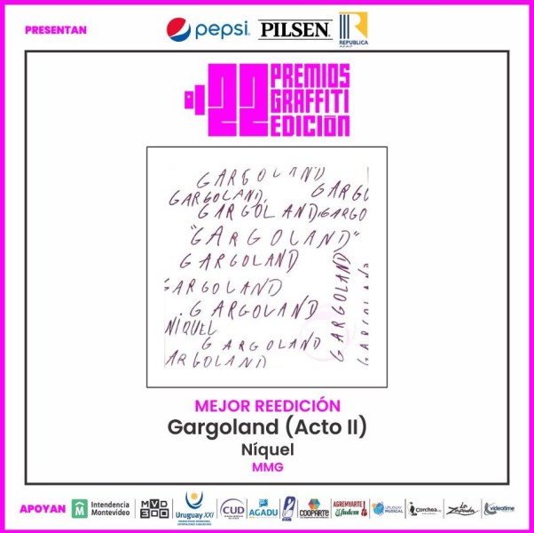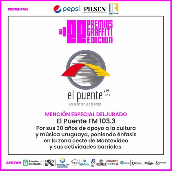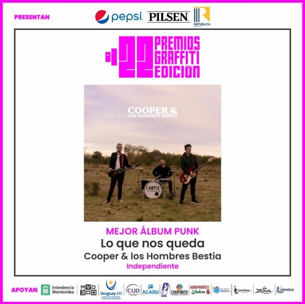 La primera ceremonia de entrega de Premios Graffiti se llevó a cabo anoche en el Centro Cultural Florencio Sánchez. Dentro de los 19 premios entregados y en relación al rock, destacamos a El Puente FM (Mención Especial del Jurado), Níquel (Mejor Reedición, por Gargoland Acto II), Paco Espínola (Mejor Libro Sobre Música Uruguaya, por Flaco Barral: Sobras Completas), Spuntone & Mendaro ft. Luana (Mejor Video Clip En Vivo, por “En un lugar un niño”) y Cooper y Los Hombres Bestia (Mejor Álbum Punk, por Lo Que Nos Queda). Compartimos todos los ganadores, a continuación.