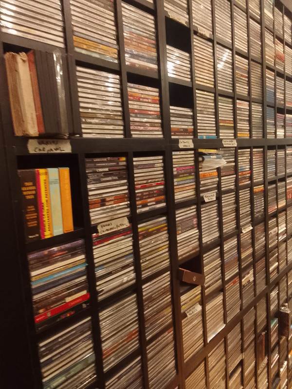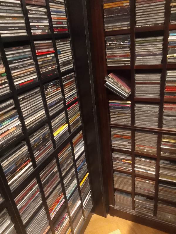 Diego: Eso se tuvo que hacer rápido para saber lo que tenemos. Por ejemplo, en la base de música uruguaya de CDs y cassettes en Buenos Aires, completa la data, tengo cargados 11.000 discos. Acá tengo 10.000 más que no están cargados, pero están identificados con sus códigos, con sus cosas, pero no al nivel de detalle de los de Buenos Aires. Y si decimos que vamos a poner un freezer y que no se compra más nada y vamos a armar la exhibición y el lugar en que se haría, tendríamos dos años de armado para ordenar y aclimatar. Porque además hay radios, aparatos, posters, afiches. Y no entré al cuarto de los discos de pasta, no sé lo que hay. Sé que ahí está, por ejemplo, la colección entera de Gardel y lo que Canaro grabó en pasta.