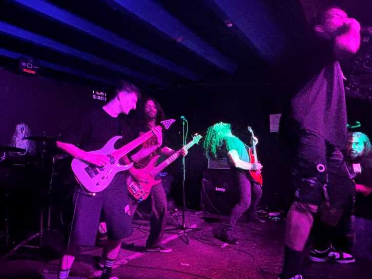 Grela fueron los siguientes de la grilla. La banda que nació en plena pandemia también, y que se encuentra formada por por Max en guitarra y voz, Profano también en guitarra y voz, Nachito en el bajo y Lucho en la batería, tuvieron una actuación donde la locura y el desparpajo se dieron cita. En principio, el grupo ejecuta un estilo tan variado como alocado, ya que va desde el punk, hardcore, pasando por el thrash, crossover, para llegar al grindcore y brutal death.