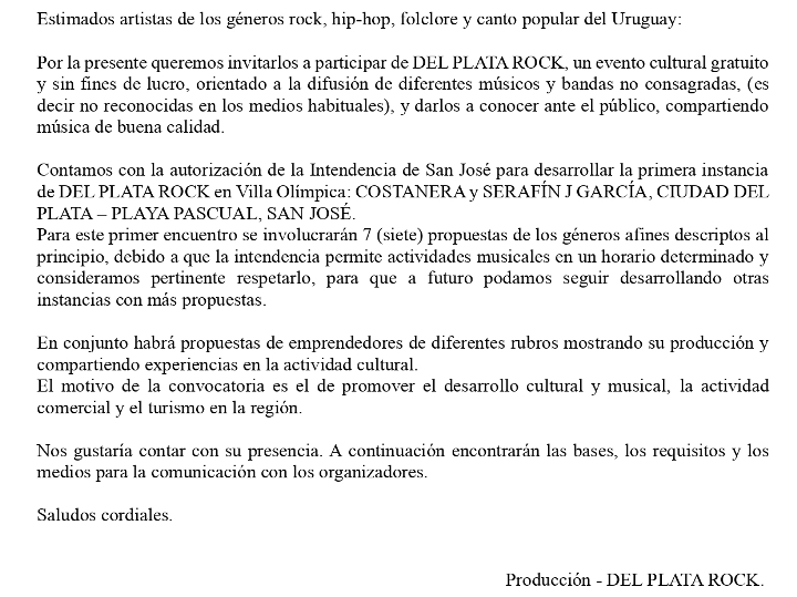 El 12 de abril próximo se llevará adelante el evento que se ha dado en llamar Del Plata Rock. Es una convocatoria a artistas y bandas nacionales donde el rock tiene la posibilidad de tener su espacio. A continuación, brindamos todos los detalles.