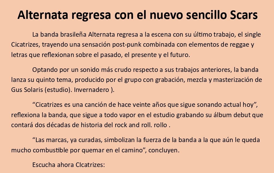 Alternata es una banda proveniente de Brasil. El trío acaba de lanzar su simple “Cicatrices” que ya está disponible para su escucha. Lo compartimos, junto a la toda la información, a continuación.