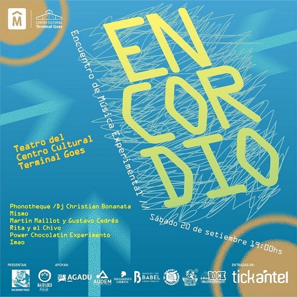 El 20 de setiembre tendrá lugar un evento musical sin precedentes. No por su formato o por el lugar donde se dará, sino por el contenido que se plantea. Se viene Encordio, un neologismo que quizás perdure como nuevo concepto musical. En un mismo día coexistirán propuestas tan variadas que van desde música electrónica, pasando por sonidos que se arriman al cabaret europeo, experimentación instrumental, Radiohead mezclado con tambores, hasta psicodelia con tintes Stoner y mucho rock. El evento será en el Teatro del Centro Cultural Terminal Goes, en General Flores y Domingo Aramburú. El 20 de setiembre a las 19 horas.