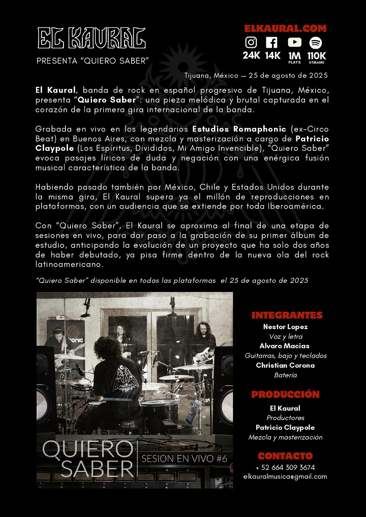 Desde México viene sonando la banda El Kaural. Llegan a Sólo Rock Uruguay de la mano de la edición de “Quiero saber”, canción que lanzaron recientemente, y a la que acompañan con un video. Compartimos, a continuación.
